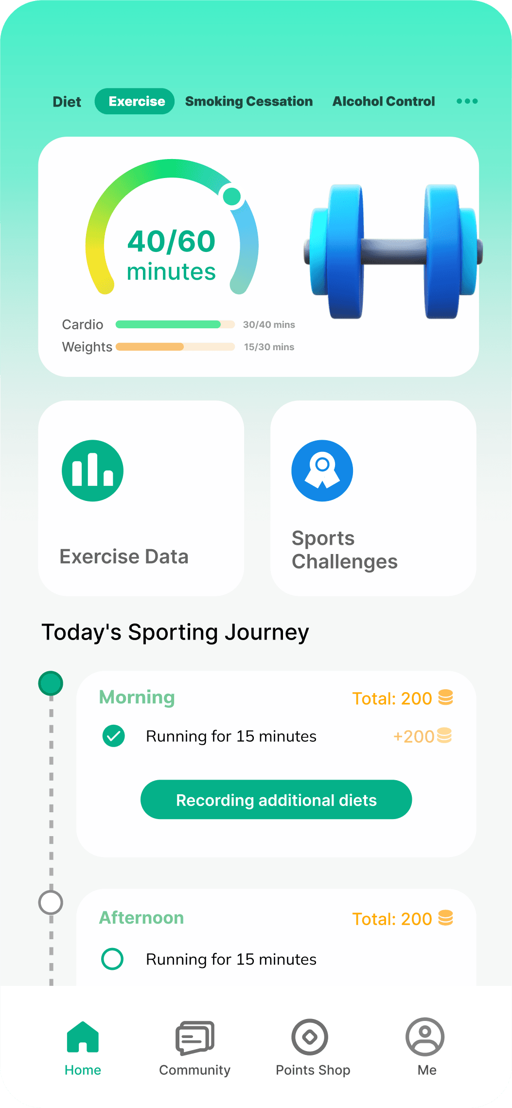 Non-communicable diseases (NCDs) are one of the leading causes of death worldwide, and they are closely linked to people's lifestyles. This project aims to design a healthy lifestyle app covering four key areas: diet, physical activity, smoking cessation, and alcohol control. By incorporating gamification principles, the app is designed to increase user engagement.