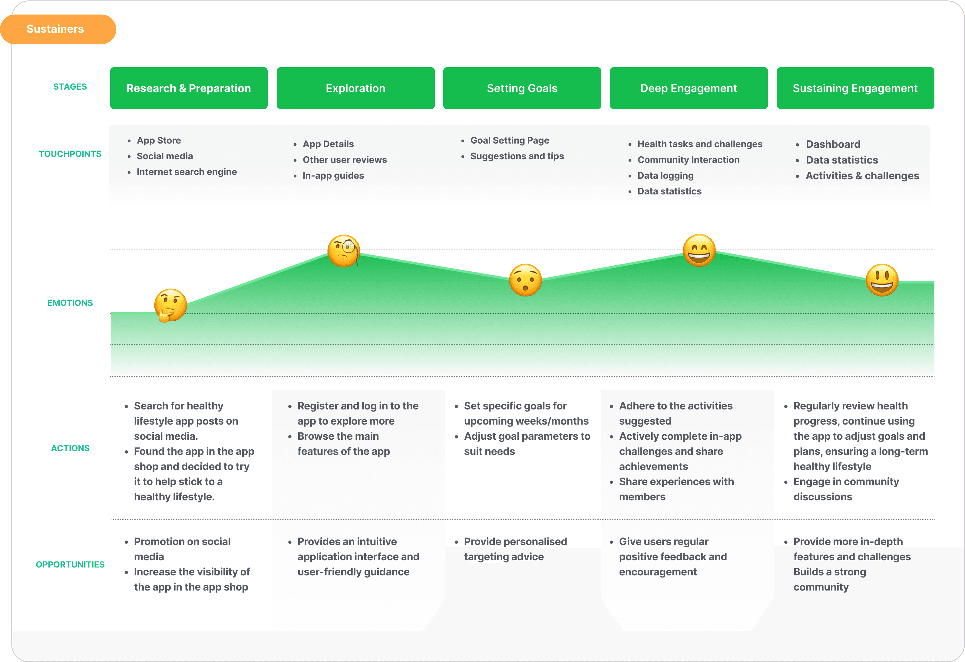 Customer Journey Mapping (CJM) provides a holistic view of the user experience from the first contact to the long term. By visualising the various touchpoints users encounter, CJM highlights areas of delight, apathy and friction. This approach ensures that designers and stakeholders can identify opportunities to enhance and address pain points.